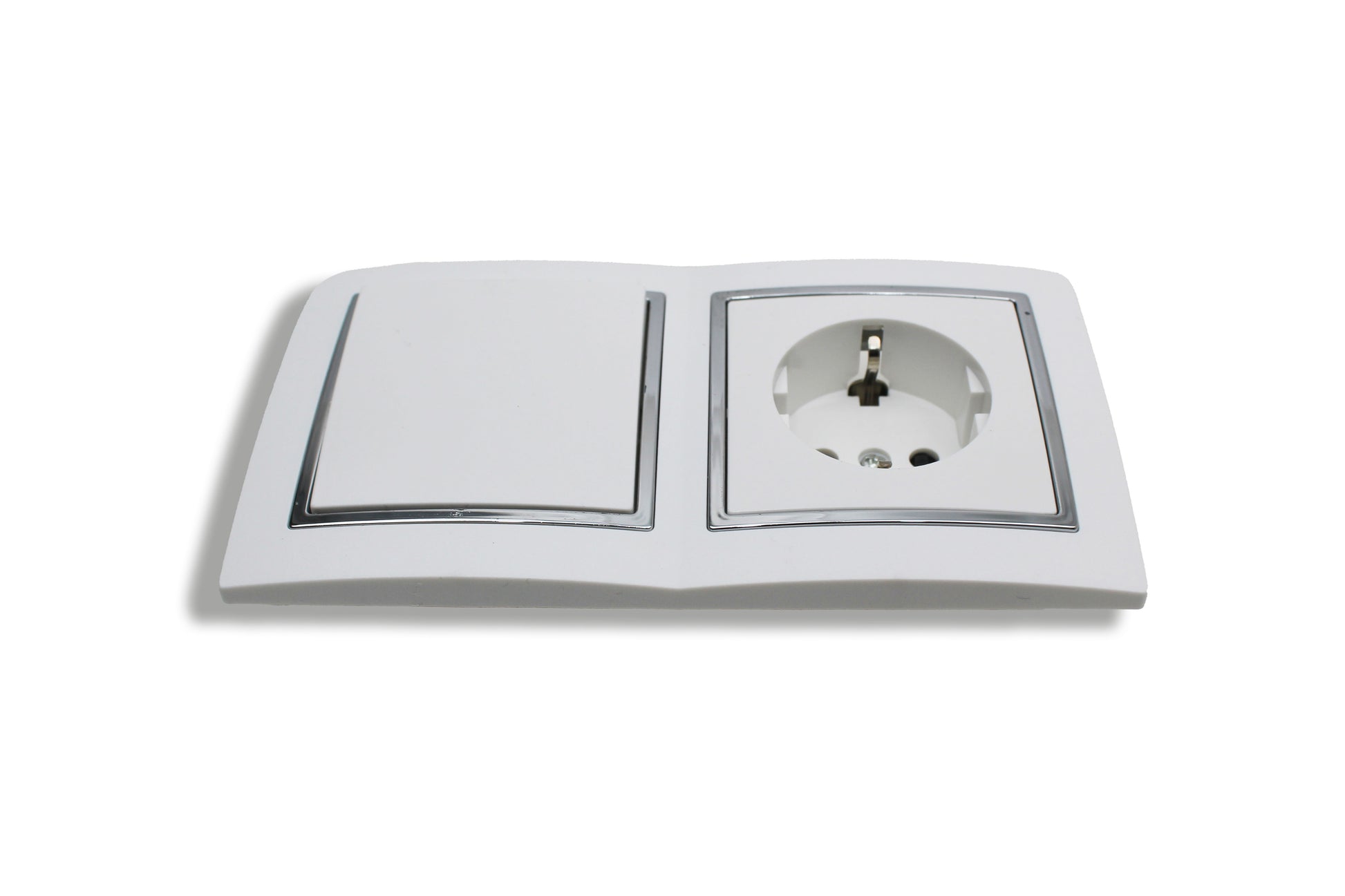 Extra Star – Kombination: Wippschalter + Steckdose – 10AX / 16A – 250V – Unterputz – Weiß mit Chromrahmen
